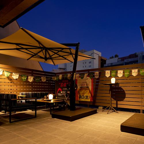屋上のテラス席でビアガーデンが楽しめます。