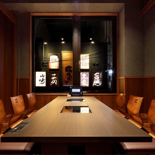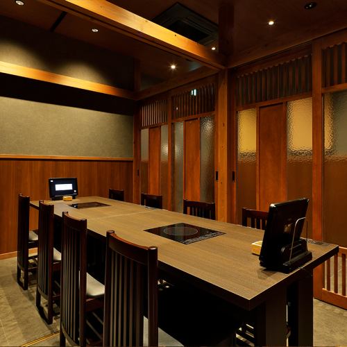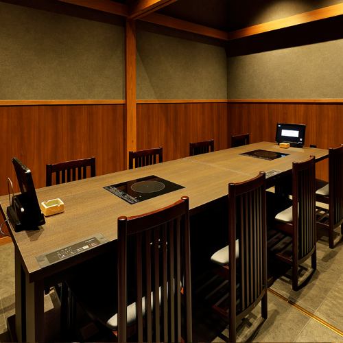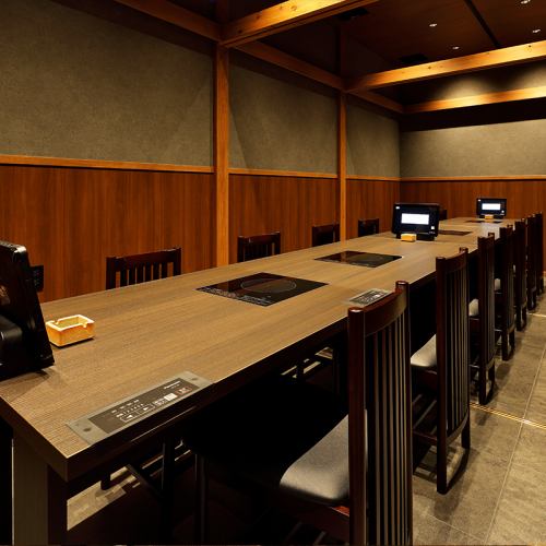 席数よりも、お客様の居心地を重視して設計。お客様同士の間隔はゆとりがあり、移動が楽に行える部屋の広さになっております。フラットなIHテーブル、タッチパネルオーダーで食事中の利便性にも配慮。その他、エレベーターや喫煙ルームも完備しており、接待にも利用できる居心地の良い店を目指しました。