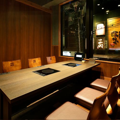 温かみと落ち着きを感じることのできるテーブル個室。3部屋・お席をつなげることも可能ですので、最大24名様までご利用いただけます。完全個室のため、周りを気にせず、会話やお食事を楽しめる空間ですので、ご宴会や接待にもおすすめ。